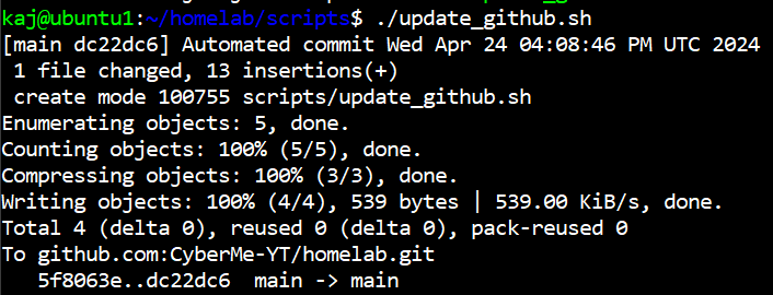 Note: Honestly not the best way to go about it if you are looking to have actionable commits. For example we are going to use this script that will push to our repo once a day with “Automated commit (date)”. Not giving us much information to reference as to what was changed and will require us to dig into the diff to see what updates have been made. The biggest reason why I want to go about it this way is because 1. its a lab environment and 2. I rather have the changes pushed then forget altogether and lose out on the repo being updated over time. Its up to you, for me its just another fun thing to do.