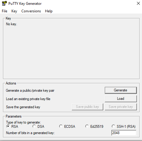 It should open PuTTY Key Generator. Click Generate, move mouse on key area for randomness. Once the key is generated you will click Save private key. This will generate a .ppk file which should be stored in the .ssh directory in users home folder.