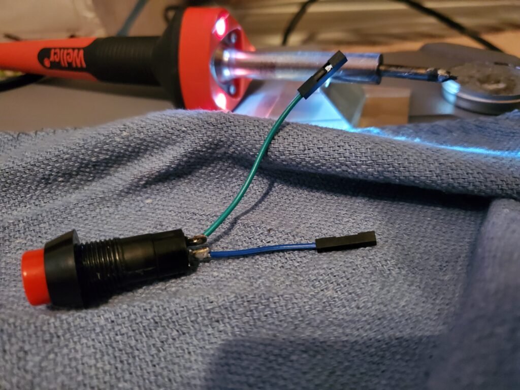 I used a bread board with a momentary switch and two wires. This is just an easy way to verify the solution will work as intended.