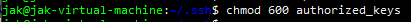 We then want to move into the .ssh directory. Once inside we want to create the authorized_keys file. You can do this by using the touch command. After creating we want to set these permissions to 600.