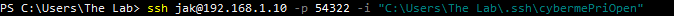 jak will be replaced with the username your logging into via Linux machine. The -p is identifying the port we decided on earlier. Lastly is the -i which will identify the key. This key happen to be the one I downloaded from putty under Conversations > Export OpenSSH Key.