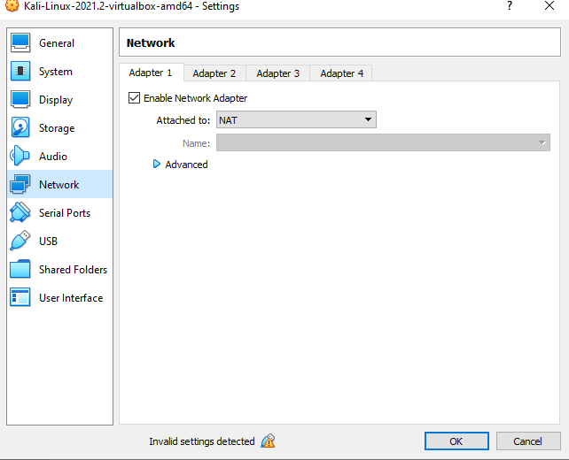 Within the settings of the VM you want to ensure you have the appropriate settings enabled. With NAT enabled on adapter 1, the VM will have its own IP from a virtual “Switch” within VirtualBox. This switch is logically connected to the router which is connected to your host machine thus giving you access to the internet. This also means it is important that you protect this machine just as much as anything else you have connected to the internet.