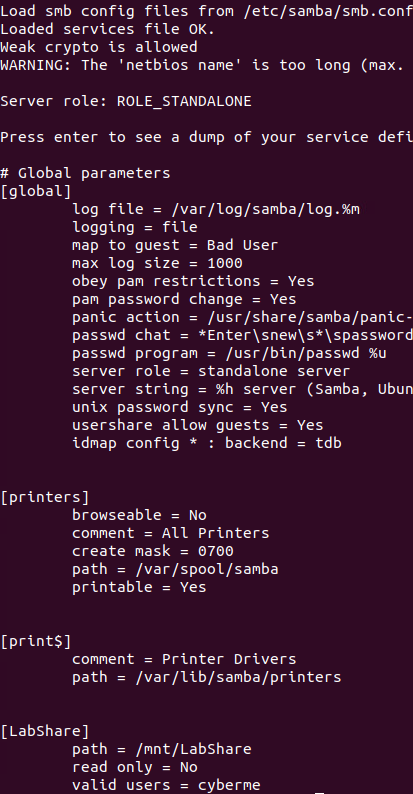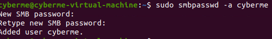 NOTE: I just wanted to bring this up now, for whatever reason I have ran into a problem during the lab but never during initial setup months ago. When I created the username “cyberme” in step 2 it does not work when trying to login from any machine, Linux or Windows. I created a new user “jack” and it works great. With that in mind, if you try to create a new user using smbpasswd, that user must be a unix user first.