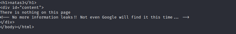 Again, we will adjust variables to visit the natas3 page.