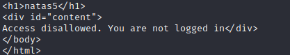Next we will get to play around with the cookies. Once logged into Natas5 we notice it say that we are not logged in.