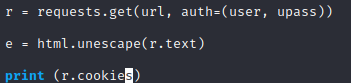 Similar to the custom headers in Level 4 we will enter custom cookies. First we can print the cookies in python to see what is being requested.