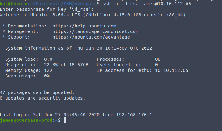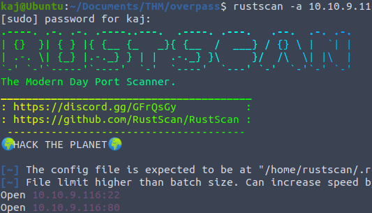 Today we are going to complete the Overpass on TryHackMe. I have been enjoying TryHackMe lately. This week I have completed about 5 rooms. This particular room took a little longer then anticipated but nonetheless, I learned a few things and had fun. In this room we will discuss Rot13 (Caesar Cipher), Javascript, SSH keys and privesc using tools like linpeas.