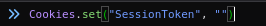 With Chrome Developer tools we can interact with the Javascript directly using the console tab. Using Cookies.set lets set “SessionToken” to an empty string “”.