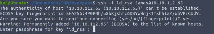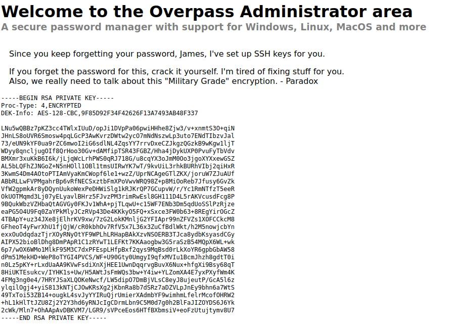 Awesome! Lets copy this private key and try logging into SSH on the machine. Lets also take note of the name ‘James’.