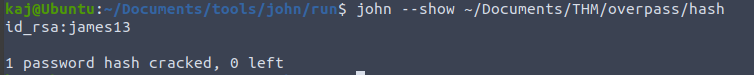 I had ran this previously when I completed this room so no password hashes were cracked. Instead it has been stored and can be viewed using –show