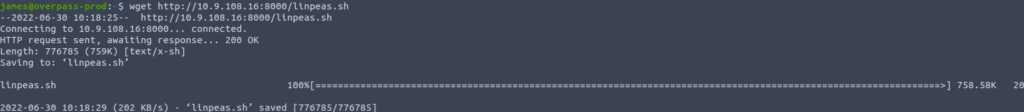 Now that we are on the machine, lets run linpeas to get some information and try to escalate our privilege’s to root. In order to get linpeas.sh on the remote machine, I host a python3 web server using the tunnel address and then wget to download.