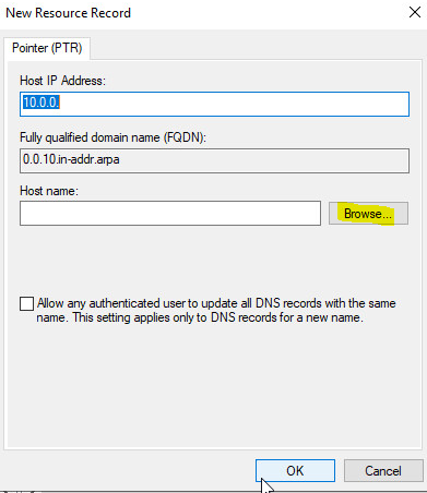 You can right click the newly created zone or right click inside the newly created zone and click “New Pointer”. On this screen you will want to select “Browse”.