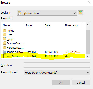 Great now the lookup zone is created. Next considering we are using the reverse lookup we must setup a pointer (PTR) record. As you can see in the picture above for the Forward Zone a “A” record will be used.