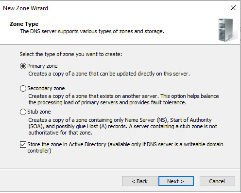 For this lab we are looking to create a Primary Zone.