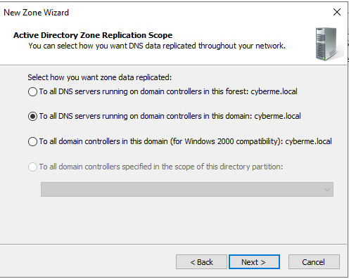 Leave it default and replicate to all DNS servers on DC within this domain.