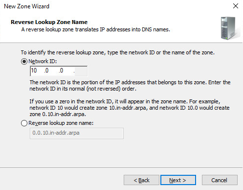 Under “Network ID:” you will enter the first three octets. So for my lab environment with a subnet mask of 255.255.255.xxx I set it to 10.0.0. The last octet will be determined by the device itself depending on if static or DHCP.